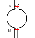 オストワルドの粘度計(左半分) 1)各試料溶液を粘度計に注入し、液面をAのラインまで吸い上げる。